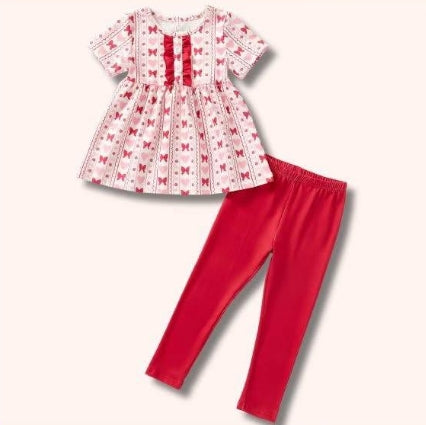 Adorable two-piece set featuring charming bow details that bring sweetness to any wardrobe. The coordinated pant set combines comfort with whimsical style, perfect for little ones who love standing out. Soft, quality fabric ensures all-day wearability while the playful bow accents add that extra touch of personality. Ideal for playdates, special occasions, or everyday adventures. A delightful choice for parents seeking cute, coordinated outfits with character.